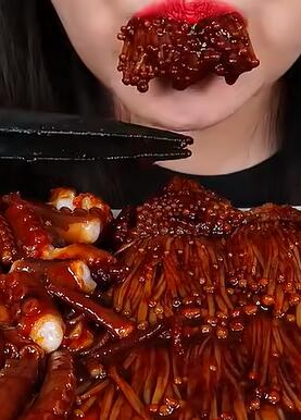 片名:《辣火鸡面酱章鱼+金针菇 吃播咀嚼音》